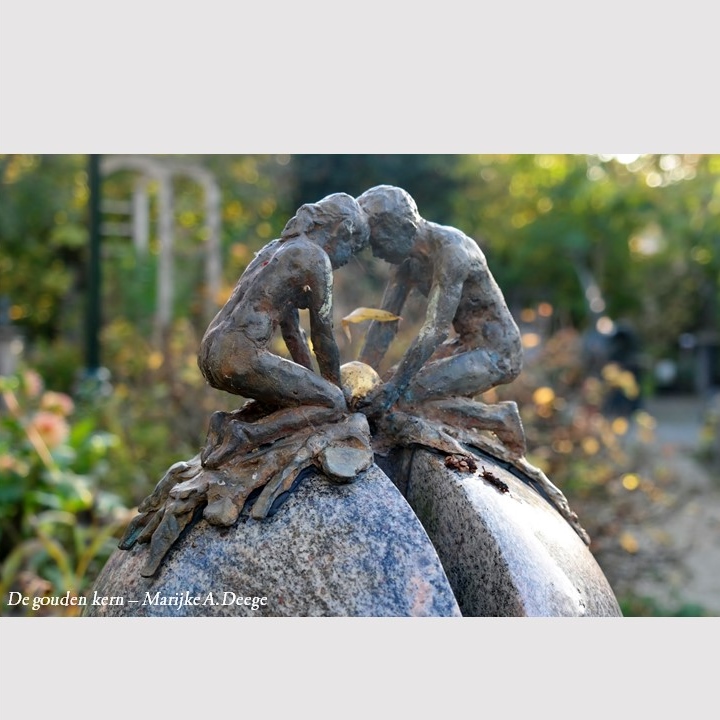 "Twee jonge mensen die samen aan het leven beginnen en hun gouden kern naar boven halen om er mee te werken." schrijft Marijke bij haar werk.