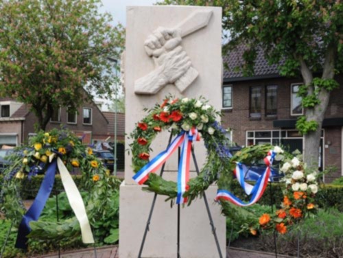 Het originele beeld van kunstenaar Marcus Ravenswaaij werd eind 2012 gestolen, vermoedelijk door koperdieven. Zijn weduwe heeft de nieuwe sculptuur ontworpen die is gebaseerd op het origineel. Het monument is onthuld door nabestaanden. Om het geld bijeen te krijgen, organiseerden inwoners van het dorp allerlei activiteiten.’ Aldus een krantenartikel.