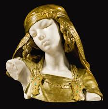 Twee voorbeelden uit de 19e eeuw een portretbuste van Barrias en een van Cordier. Die van Barrias is het portret van marmer en de kleding van brons, bij Cordier is het precies omgekeerd.