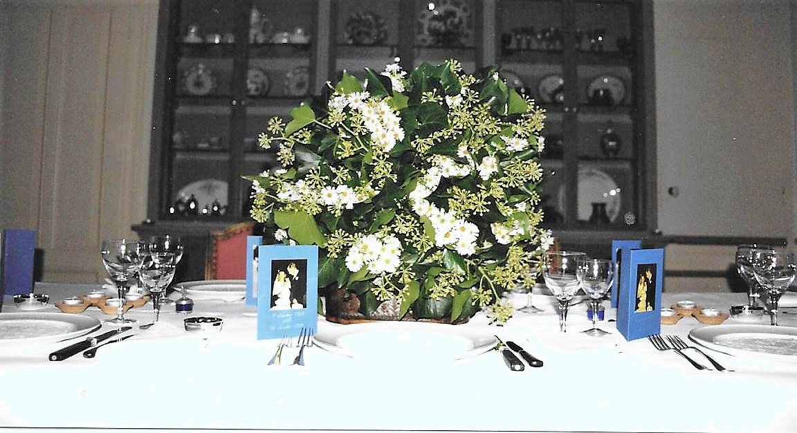 Op de mooi gedekte tafel stond het beeld, verdekt opgesteld onder een tafelstuk. Daar mocht haar bruidegom de bronzen poes onder vandaan halen. KPtje zelf bevond zich in de griend.