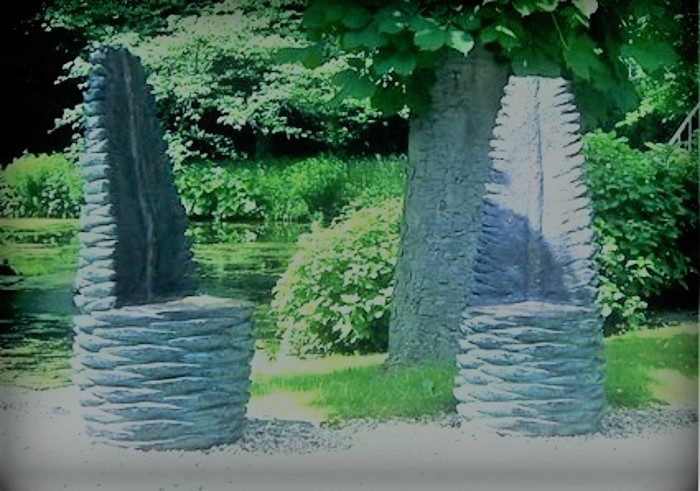 Ik besloot het voorste bovenste stuk tot de kern weg te halen en het onderste deel op zithoogte te vlakken. Zo ontstond er 'een troon'. Eén troon vond ik toch wat saai. Ik maakte er een tweede bij en liet ook deze in brons gieten. Het klinkt zo eenvoudig, maar het boetseren van een sparrenappel op die grootte is dat beslist niet.