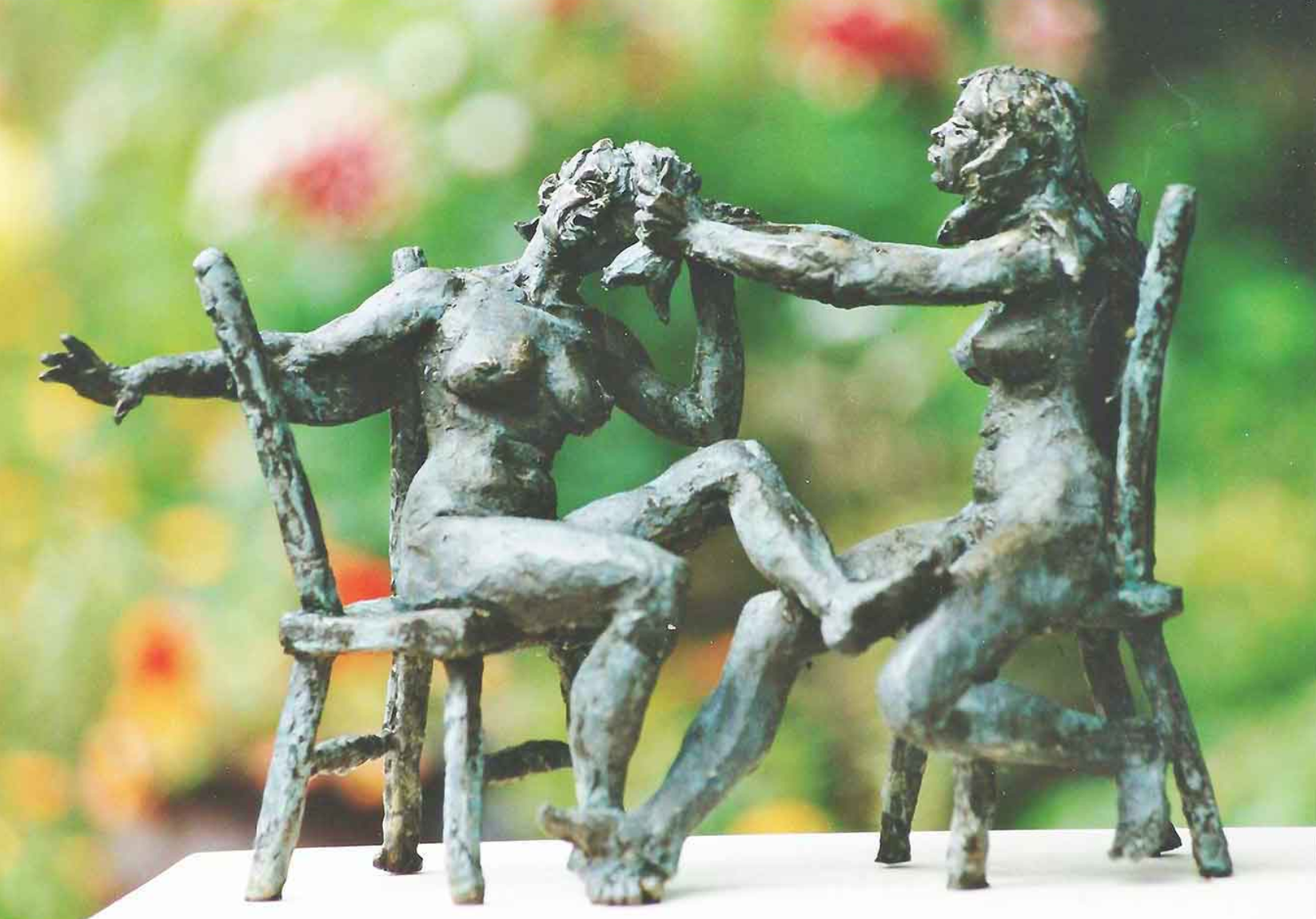€ 7.000 ( inc. 6% VAT, exc. transport etc.) Marcus Ravenswaaij, bronze, unique, 48 x 31 cm At the end of the holiday, arguments are just round the corner. Passions run high between sisters or friends; a spark can ignited in an instant. This bronze sculpture can stand either indoors of outdoors. I can recommend a pedestal, where necessary.